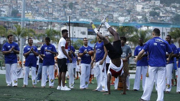 Bu arada sabah yapılan antrenman sonrası İngiliz milli takımını ziyaret etmeye gelen Capuera dansçıları İngiliz futbolculardan büyük ilgi gördü özellikle Liverpool’un yıldız forveti Daniel Sturridge ve United’lı Dany Welbeck atletik hareketleri ile Brezilyalı Capuera dançılarına eşlik ettiler Menajer Roy Hodgson ise oyunculraını gülerek kendinizi sakatlamayın diyerek uyardı.