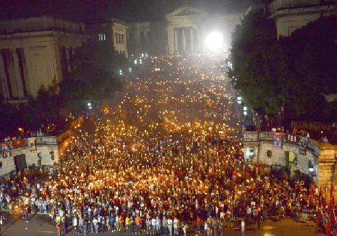Kübalı gençlerin devrime ve liderlerine olan bağlılığını göstermesi açısından büyük bir öneme sahip olan meşaleli yürüyüşe bu yıl da büyük bir katılım oldu.
