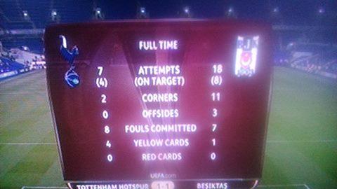 Maçın ilk devresi boyunca Beşiktaş daha üstün oynasa da soyunma odasına Tottenham’ın 1-0’lık üstünlüğü ile gidildi.