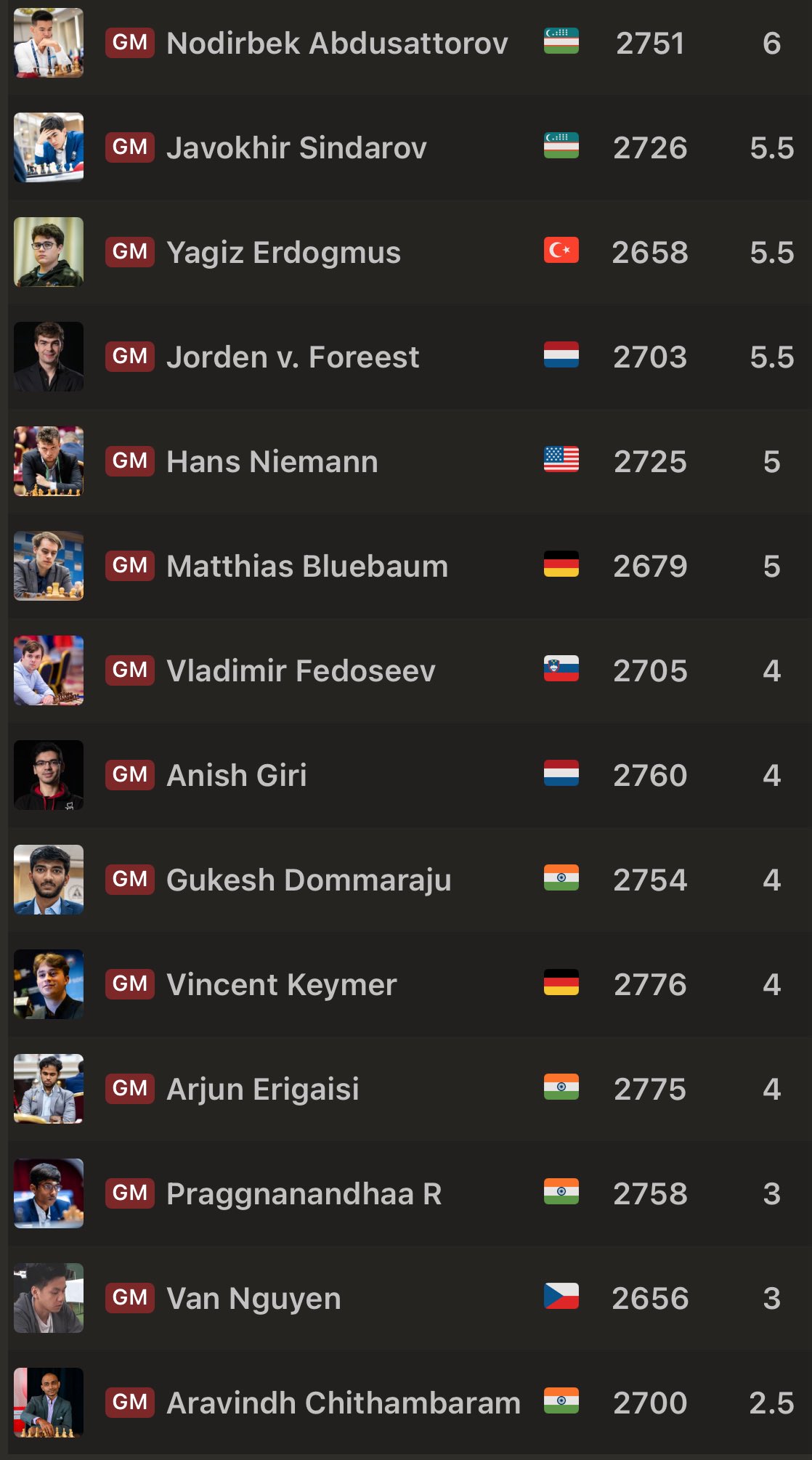 Satrançta Yağız Kaan Erdoğmuş tarih yazmaya devam ediyor. Genç oyuncumuz, Van Nguyen’i yenerek 5.5 puana ulaşıyor ve günü 3. sırada tamamladı.